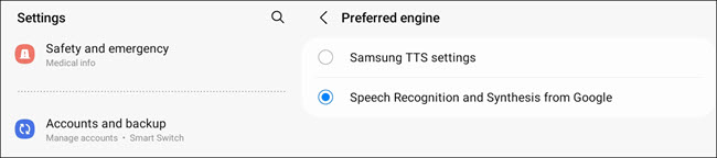 - Under Preferred engine, select the Speech Recognition and Synthesis from Google or another installed third-party TTS engine.